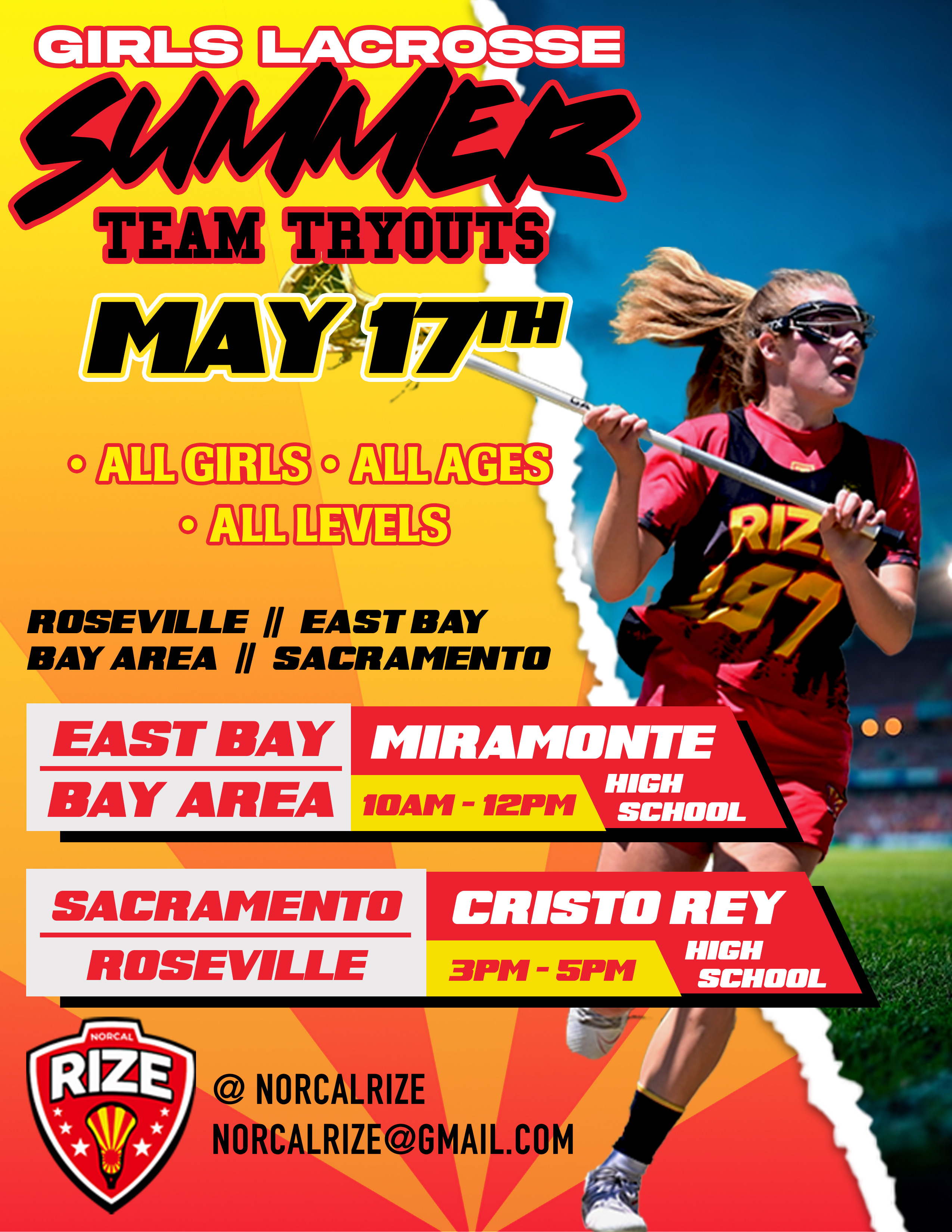 *If your daughter is not able to attend tryouts and wants to play/be placed on a summer team, please email us at norcalrize@gmail.com.